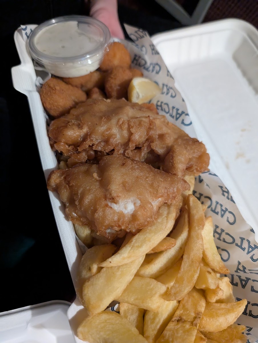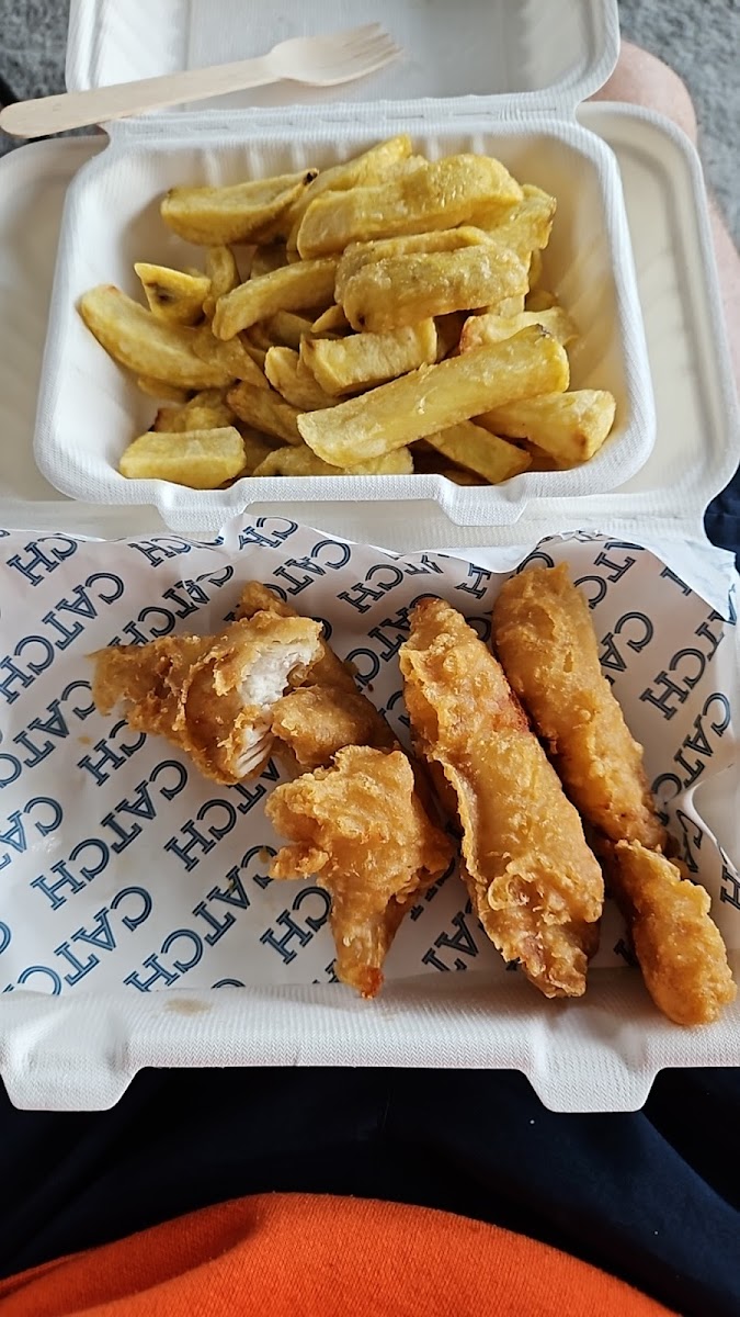 The ambiance of CATCH is friendly and inviting, perfect for a quick meal on the go. Each order is prepared with care using fresh ingredients, which is evident in the quality of their fish. A customer, Budgie McGubligan, enthusiastically shared that after ordering delivery to East Kilbride, he experienced "probably the best battered fish" he has ever had. Imagine sinking your teeth into perfectly crispy fish, with tender, flaky meat inside – it’s a flavor experience you won’t forget!