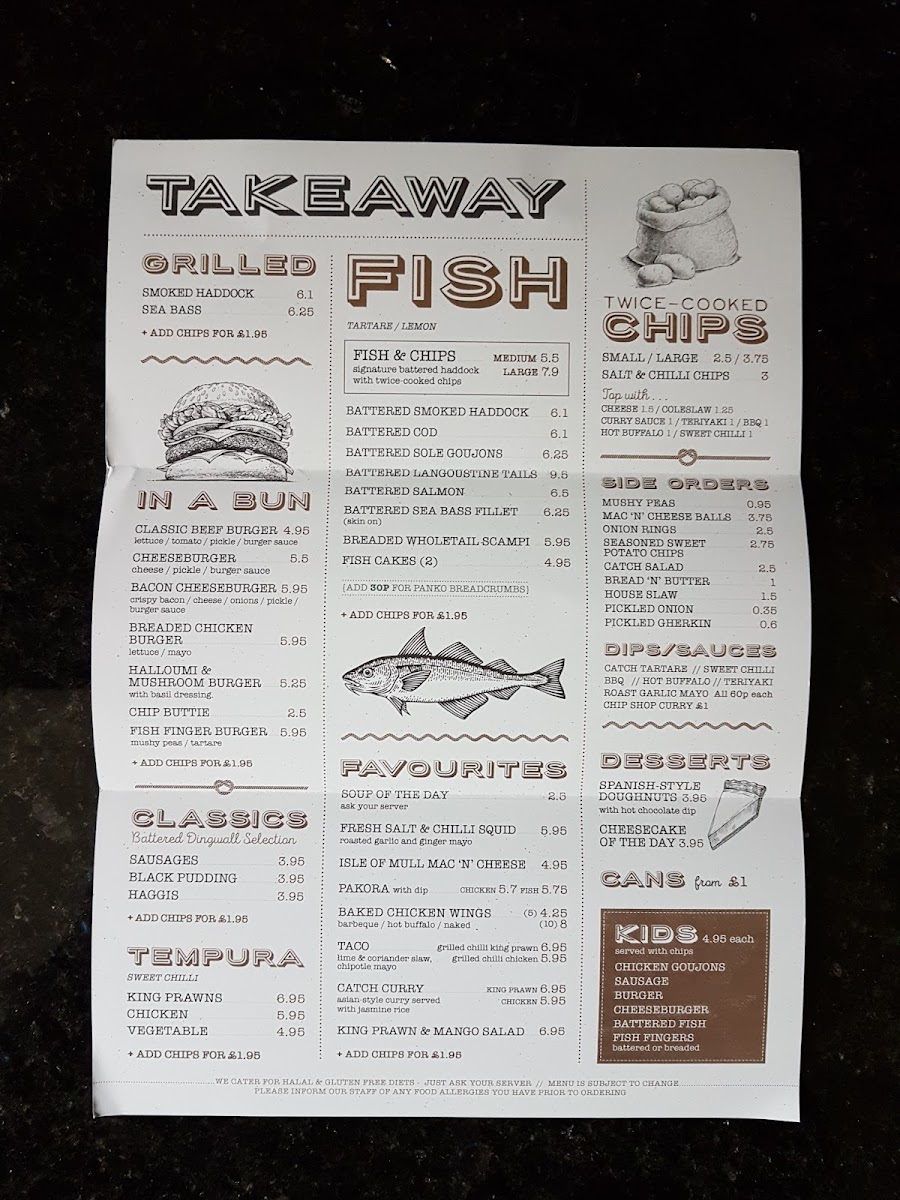 CATCH specializes in traditional fish and chips, but this isn't your average takeaway. The menu includes an enticing range of options, ensuring every palate is catered to. Not only do they feature the classic battered haddock, but they also serve up memorable dishes like Tempura Prawns and Vegetarian Sausages, showcasing their creativity. If you're feeling adventurous, don't miss the Stornoway Black Pudding, a Scottish delicacy that truly impresses the taste buds.